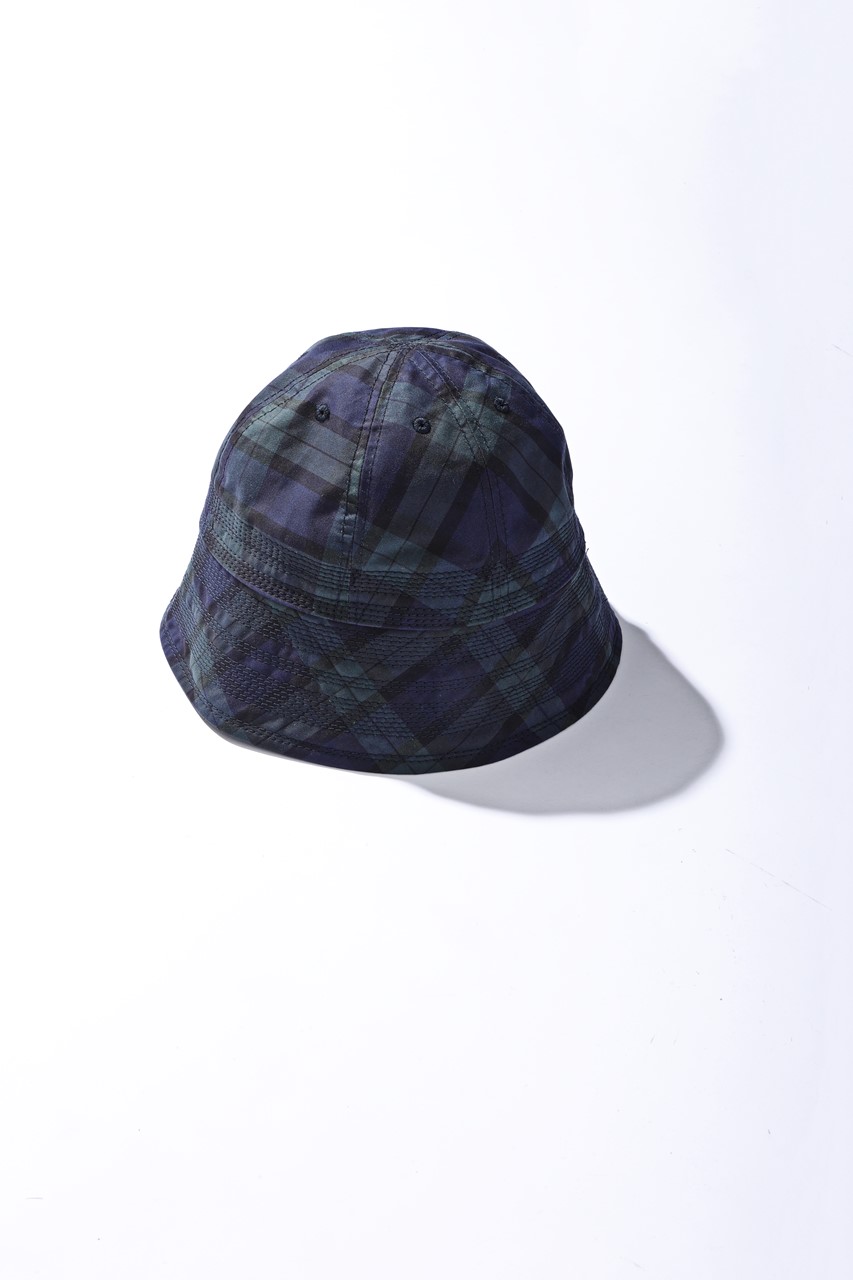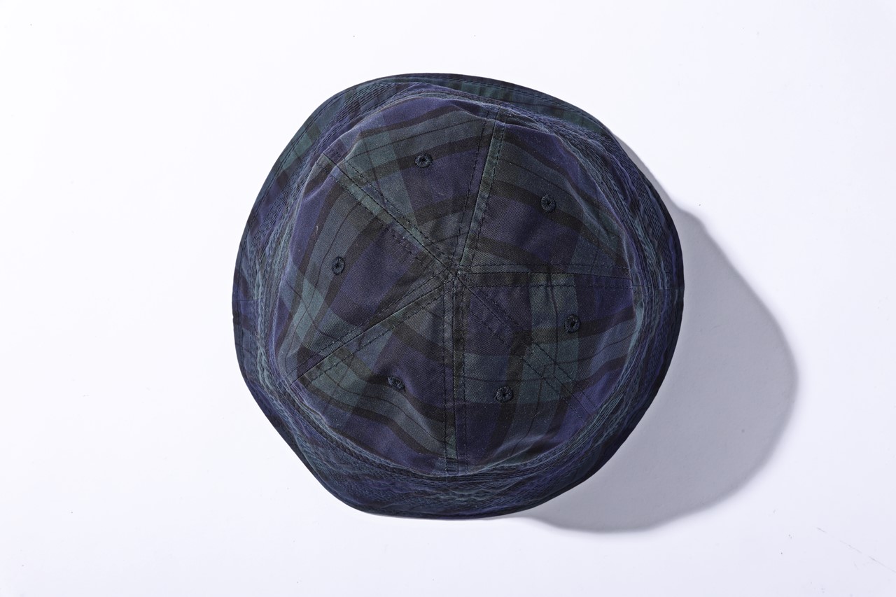 京都の職人がハンドメイドで作っているハット。上品なブラックウォッチのコットン生地が魅力。「人間の頭の形に合わせて作っているため、あえてシルエットが均等になっていない“ランダム”なカタチがポイント。真上から見ると、それがよくわかると思います」