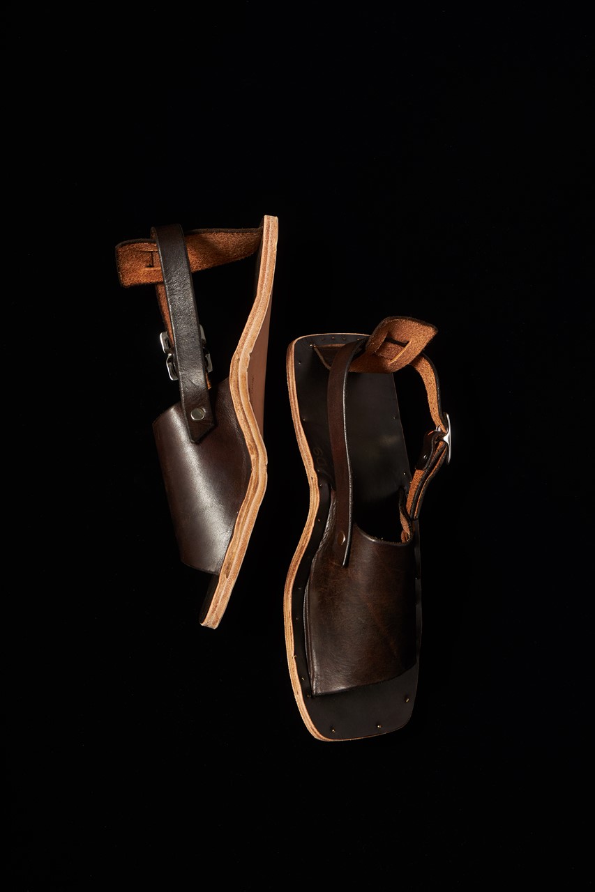 こんもりと盛り上がったアーチサポートが土踏まずを支える構造はそのままに、なんともプリミティブな表情が打ち出されている。この未完成な佇まいに何を感じるだろうか。7万4800円/ユッタ ニューマン×レショップ(レショップ 青山 TEL03-5413-4714)