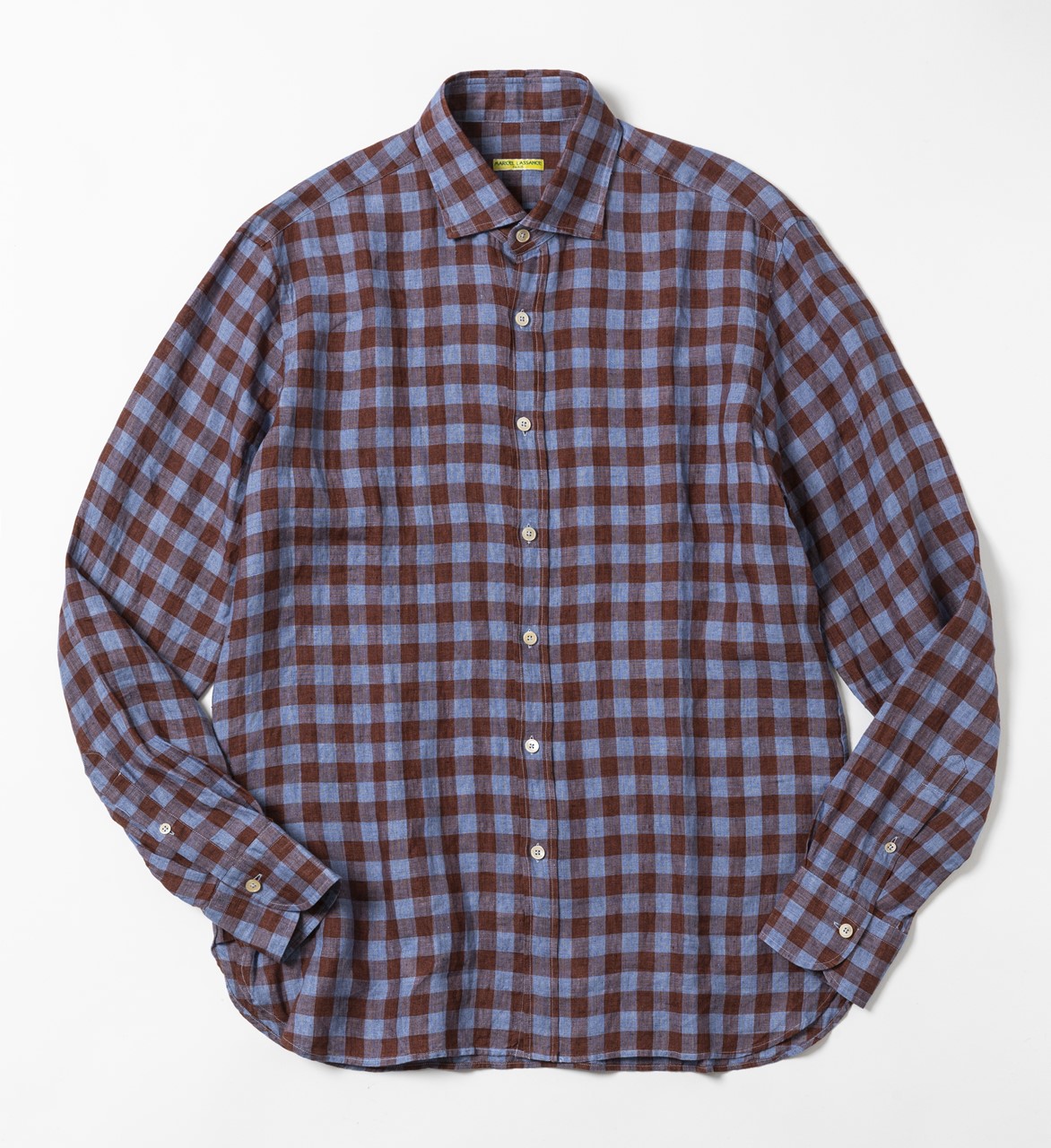 展示会でひと目惚れしたこちらのチェックシャツは、フレンチ・アイビーの代表格であり、現在はシップスのエクスクルーシブのみで展開される「マルセル ラサンス」の物。超ベーシックなシャツが、配色や襟のディテールで少し上品に見える。そんな塩梅がこのブランドらしく、即オーダーしちゃいました。