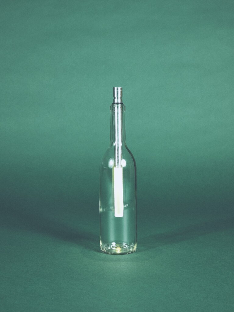 ドイツはポツダムにあるボトルライトカンパニーにてつくられるライト。光るアクリルの部分からフタの下まで耐水性があり、操作もフタを回すのみで二段階の調光が可能だ。一般的なワインボトルに取り付けることが可能なので、自分好みのボトルを探すのが楽しい。