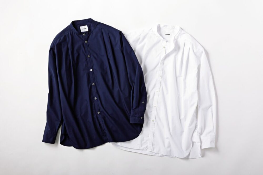 2022年のデビューから絶好調をキープする新鋭、コロン。その代名詞ともなったプリーツ入りのシャツが、大胆なアップデートを遂げた。なんと、従来の倍となる左右計4本のプリーツをフロントに配置。キャッチーなデザインが品のいい小振りなスタンドカラーとマッチして、独特な雰囲気を醸し出す。ポリエステルマイクロファイバーとスーピマコットンの混合素材も、さすがの清潔感をアピール。1枚でさらっと、ゆったり着るのがよさそう。各2万6400円(エンメTEL03-6427-2261)