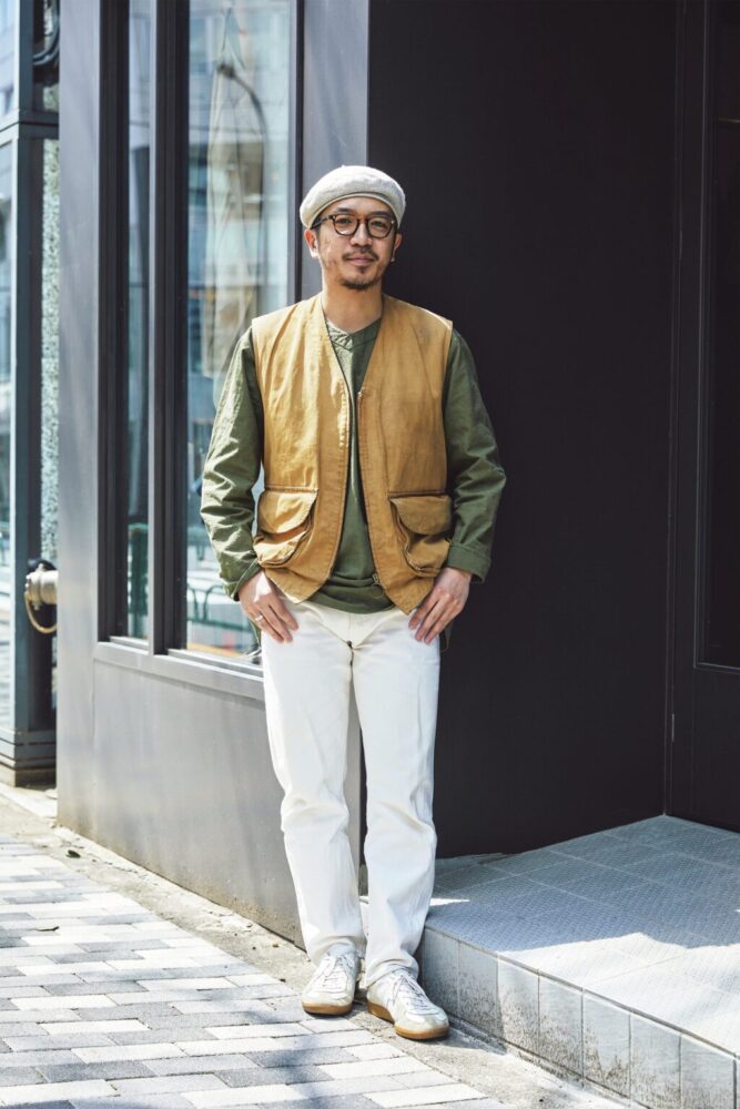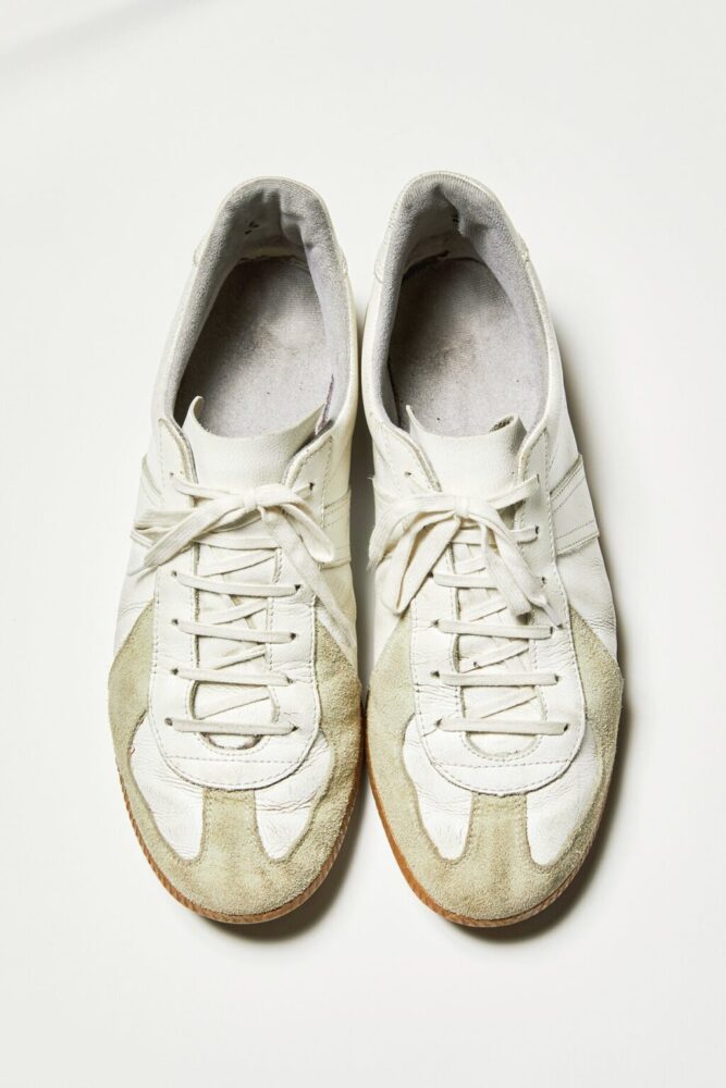 「いま履いているのは5代目。おそらく80年代前後のヴィンテージのもので、かれこれ8年ほど愛用しています。トレーニングシューズとして作られたものなので、万人の足に馴染みやすい幅広甲高のフォルムが履きやすくて好き。メンテナンスは、履き始めに防水スプレーを吹きかける程度。白スニーカーがノーケアでも雰囲気よく成立するのは、ジャーマントレーナーの大きな魅力です。ストックはヴィンテージをもう1足とショップでも取り扱っている現行ものも所有しています」