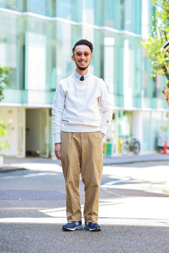 「基本革靴しか履かないですが、このスニーカーは革靴同等。疲れ知らずという点を含めれば、それ以上の履き心地です。それでいて革靴と同じような品格も備えているところも気に入っています」とベタ惚れの様子。