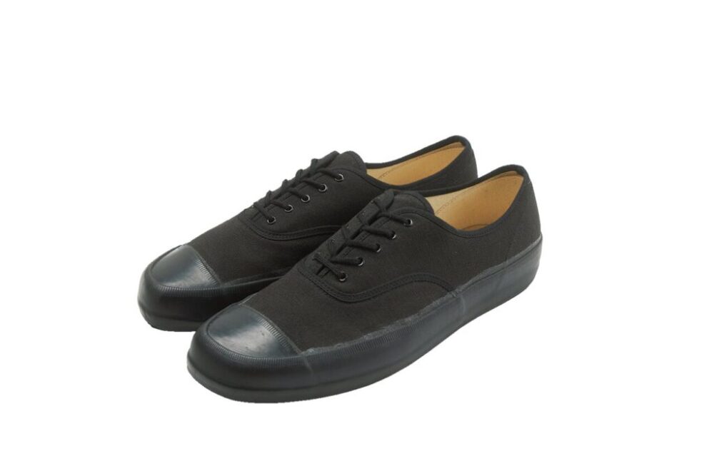 フランス軍のトレーニングシューズを踏襲したクラシックなデザイン。オールブラックに内羽根のアッパーが上品な印象をもたらす。3万800円(ギャラリー・オブ・オーセンティックTEL03-5808-7515)