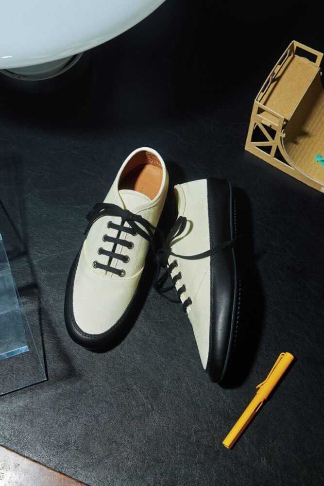一方ジョンロブの[ノーフォーク]、こちらもクラシカルなテニスシューズがデザインソース。撥水性のあるリサイクルキャンバスを使用したアッパーと、ゴルフシューズからインスパイアされた新たなソール、アッパー下部に巻いたコルトカーフが新鮮。いずれのモデルもスニーカーながら、スマート&エレガントな印象に仕上がっている。