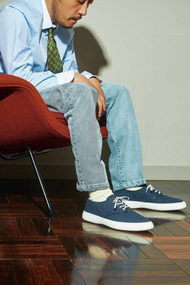 「雨の日に履いていける気楽さや利便性はもちろんのこと、デザインはいたってクラシックを貫いているところがいいですね。かたや、ダークネイビーのアッパーに、グレーのソールという合わせは新鮮でした」(生田目)