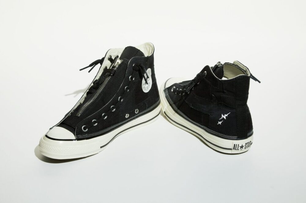 「ウィズ リミテッド」との共作で、オールスターを異素材で構成したパッチワーク状のアッパーやセンタージップなど、独自の意匠が光る。2万2000円。(替え紐つき)。