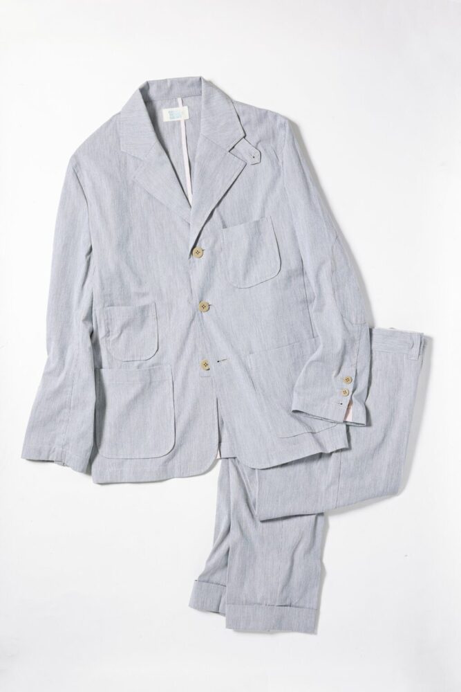 「夏素材のシアサッカー生地は、英国の植民地だったインドにて英国軍が愛用していたことでも知られますが、コードレーンもその類。気負わずに着られるのでサラッとサンダルと合わせてみては?」(八木沢さん)