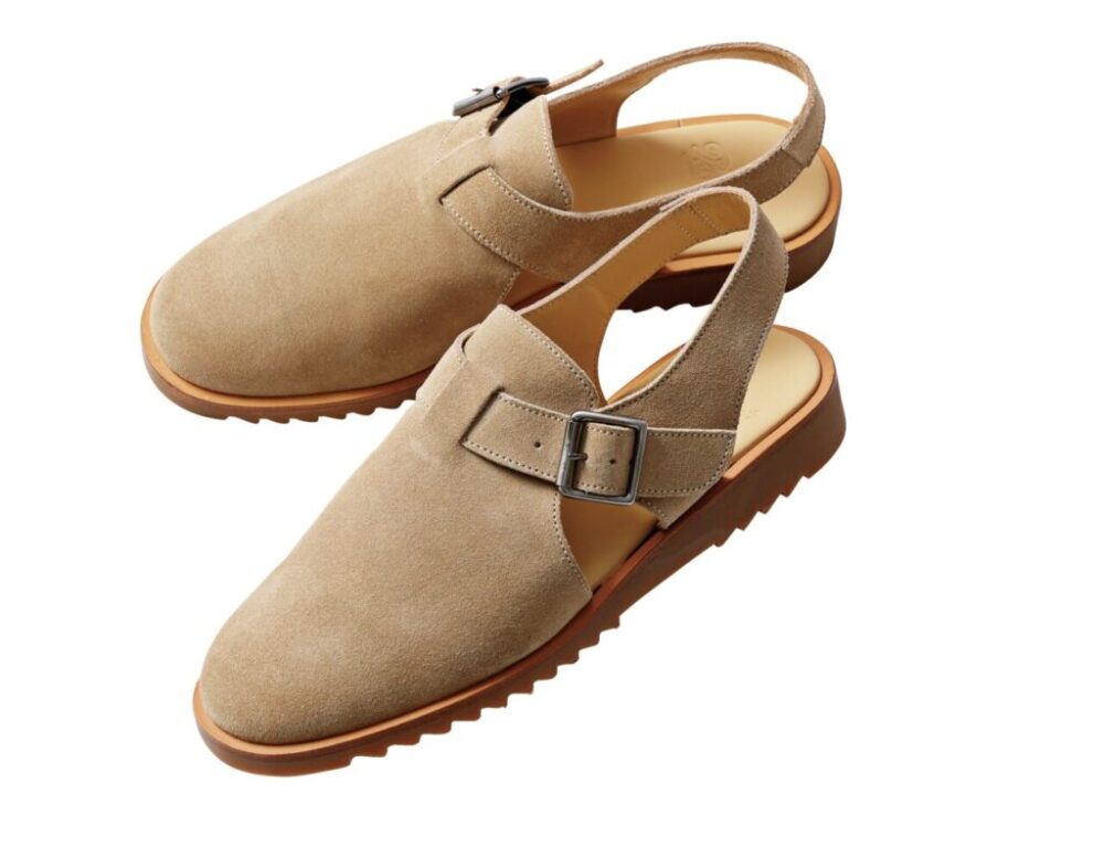 革靴とスニーカーのいいとこ取り。上品な見た目と快適な履き心地を両立するパラブーツは、そんな表現で褒め称えられることが多い。そこに、サンダルの持つ気軽さまで加えてしまったのがこちら。前から見ればシンプルなスエードシングルモンク、でもヒールはワンストラップの楽ちん仕様という心弾むキメラデザインだ。フットベッドはふかふかで、お得意のスポーツソールは歩行性抜群。はい、無敵。4万4000円(パラブーツ青山店TEL03-5766-6688)