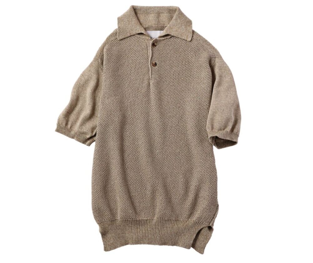 このニットTシャツの生地、なんと1日で4着分しか作れないんだとか。日本に数台しか現存しない横編み機で、超細番手のコットン強撚糸を超ハイゲージに編み上げ。超ばかりで超恐縮だけど、それだけ超貴重なのである。スムース編みゆえ生地のキックバックも抜群で、きれいなシルエットと素材感がヘタりにくいのもありがたい。豊富なカラバリの色ち買いは当然、秋冬のインナー着用を見込んだ“サイズち買い”だって推奨。1万9800円(バトナーTEL03-6434-7007)