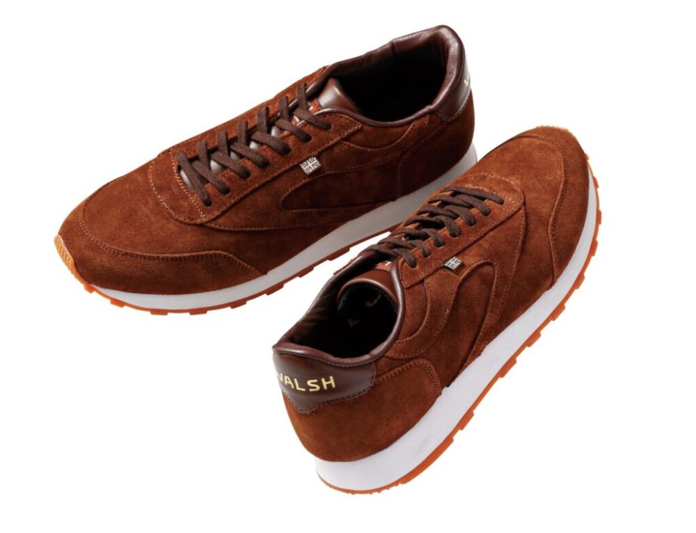 レザースニーカーは数あれど、英国スタイルにここまでハマる1足は珍しいと思う。現在も英国内で製造する老舗のこだわりが、上品で深みあるデザインに凝縮。’80年代にリリースされたラストの細いロードレース用シューズをベースに、同色のスエードとスムースレザーを巧みに使い分けてシンプルモダンに昇華させた。高品質へのあふれ出る自信を代弁するような、ヒールカウンターの金ロゴにも注目されたし。3万9600円(カメイ・プロアクトTEL03-6450-1515)
