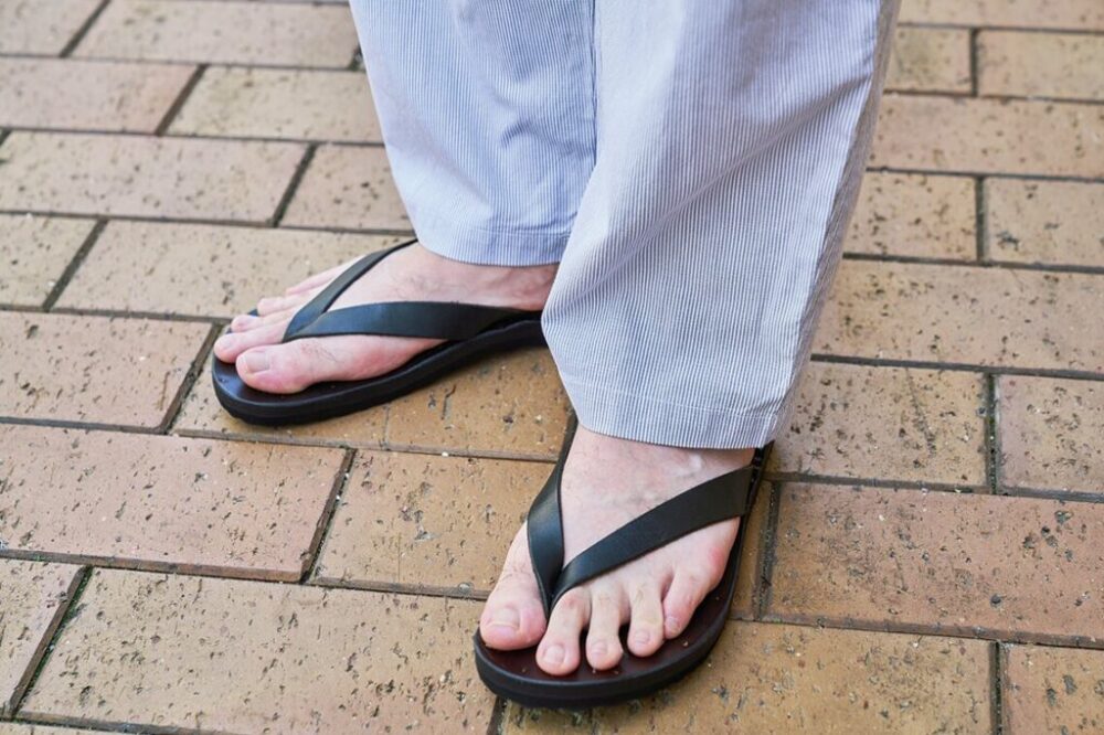 「セットアップにサンダルを合わせ、リゾート感を出しました。セットアップと同じ東海岸生まれのレザーサンダルを選んでいます」