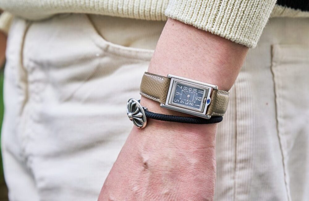 「シンプルなコーディネイトが多い夏は、小物選びを特に気をつけています。小ぶりな時計とブレスレットは邪魔をせず夏の装い良く合います」