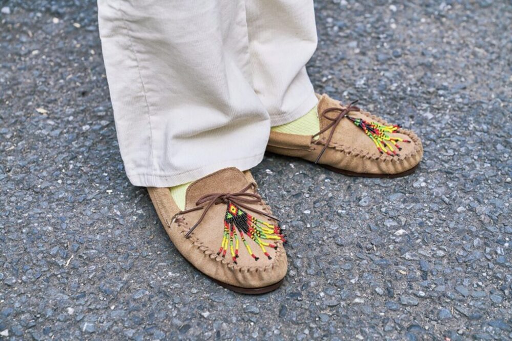 「足元はロイドフットウエアのモカシンシューズにしました。アクセントが欲しくてクツヒモの部分を自分でカスタマイズしています」