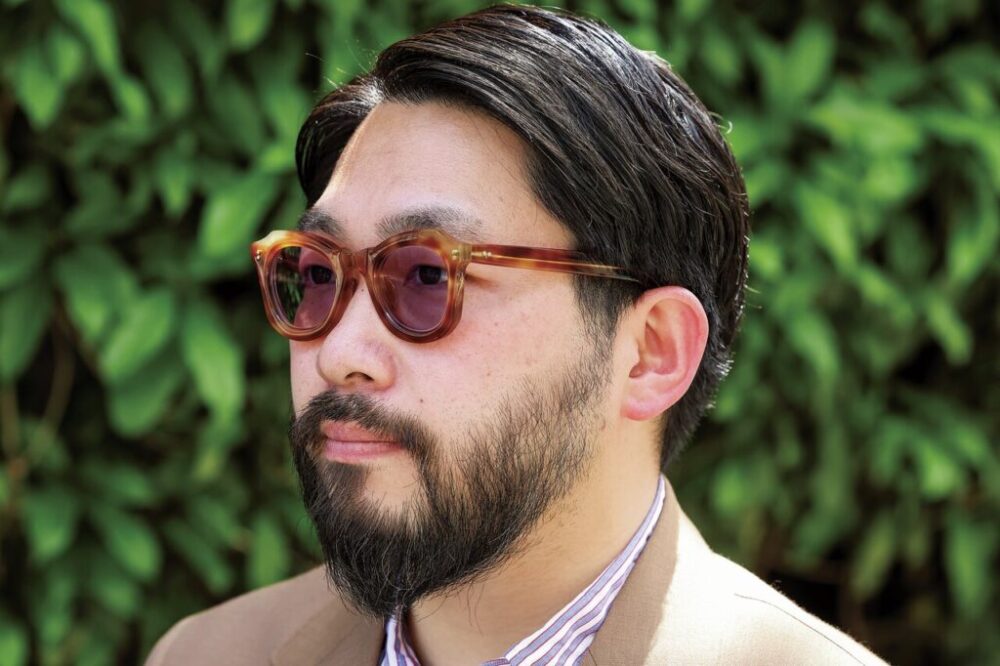 英国を代表する老舗ブランド〈カトラ―&グロス〉のラウンドシェイプを品よく掛けこなすソリマチさん。上品な雰囲気ながら、幅の太いブリッジがほんのり個性を醸し出す。