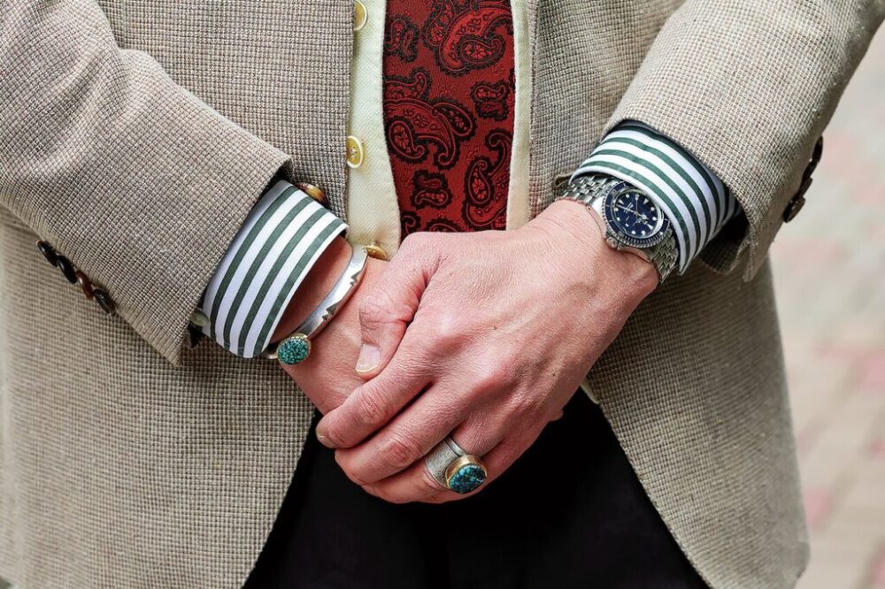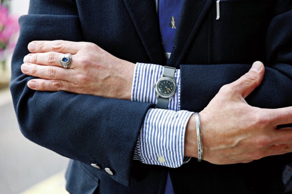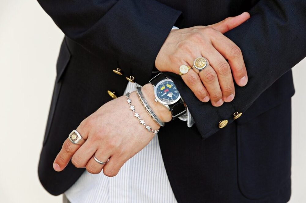 トラッド上級者の手元には時計・リング・バングルの3点が合わせてつけられている。ひとつが欠けても成立しない3点の黄金比は、絶好の手本となること間違いなし。
