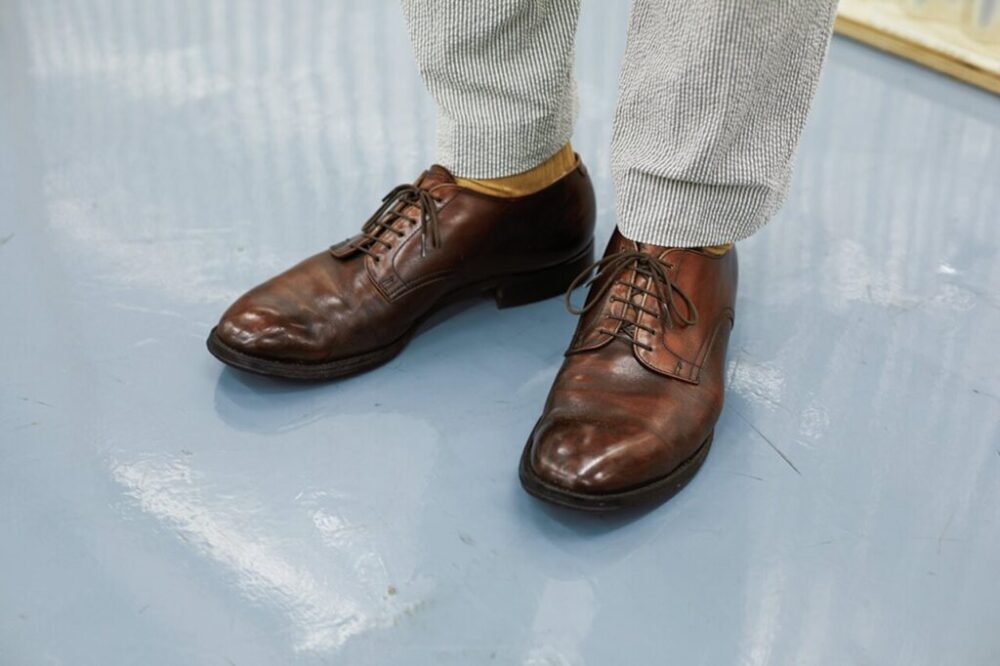 「茶色カーフのプレーンというオーソドックスなオックスフォードは、水にも強く突然の雨でも気にすることなく履けるので夏場は重宝しています」