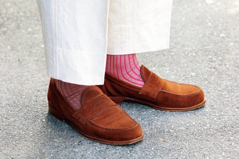 「モヘア混のジャケットに合わせて、同じく毛羽感のある革靴を。無理をせず上品に装いたい僕にとっては、アンライニング仕様が嬉しいです」