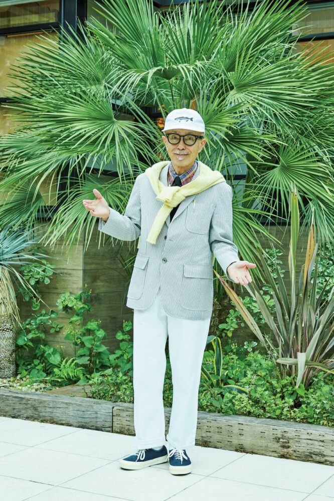 着方としては、ボタンを一番下で留めています。この着方はジャケットの作りとは逆に、セオリーに反しています。このバランス感覚は映画や雑誌から得た知識と経験から身につけたものです」