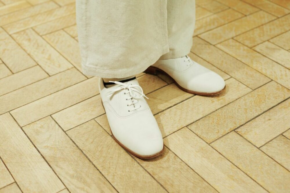改めて内訳を見てみよう。いわゆる「紐靴」を履いている4人が、いずれも内羽根式しか履いていないのは偶然だろうか。もしかすると上品なデザインの靴においてこそ、ホワイトレザーがより引き立つのかもしれない。