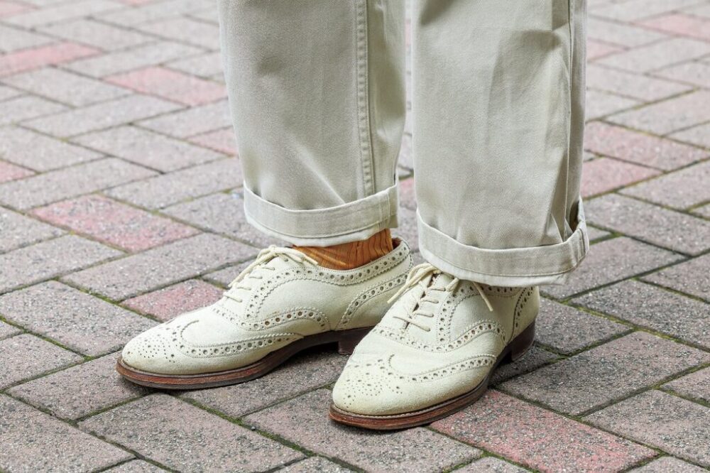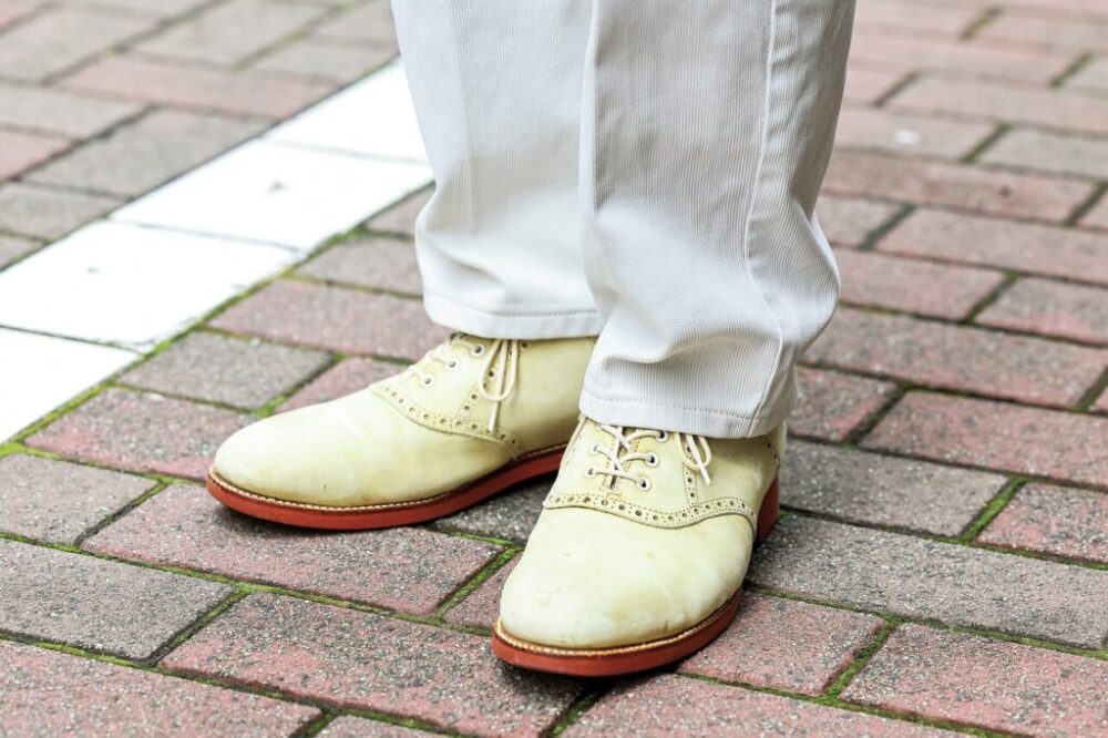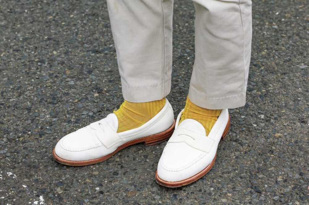 60人以上ものスナップを撮影しているとは言え、かなり少数派だろうと思っていた白い革靴の着用率が10%を超えてくるとは、正直予想だにしていなかった。