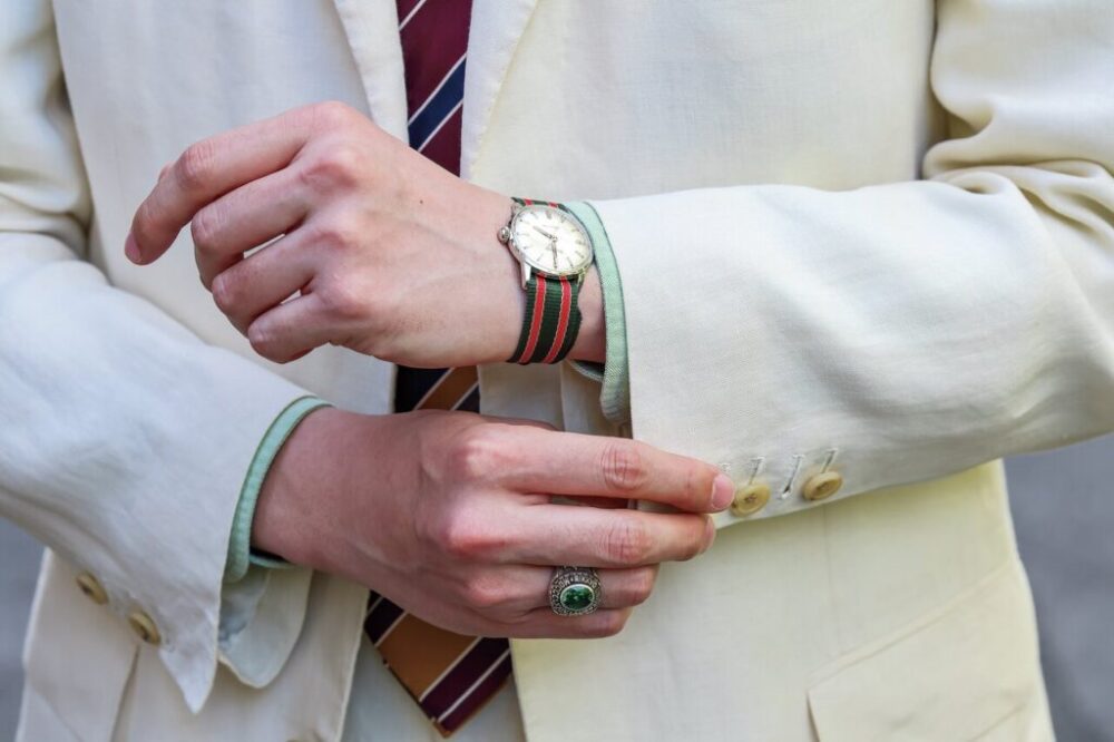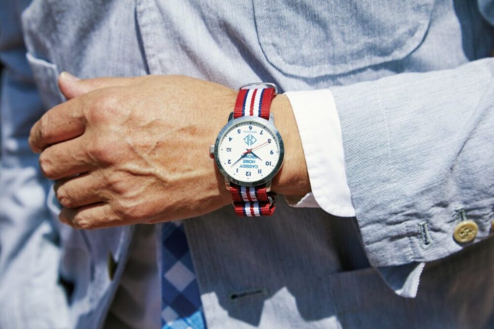 プレッピーの定番であるリボンベルトや、スケルトンのチープ系、あえてヘビーなメタルブレス……。シアサッカーやマドラスといったサマージャケットに合わせる時計の選び方は千差万別。