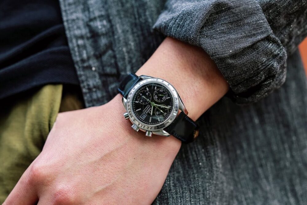 約18年愛用しているという〈オメガ〉の[スピードマスター]。ブラックフェイスは使いやすいうえ上品で、ユーロスタイル含め、どんなスタイルにも合わせやすい。