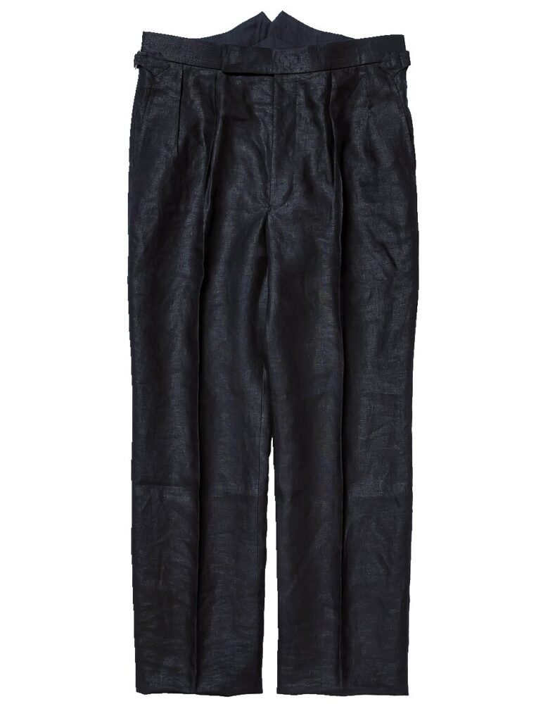 マスターテーラーである平野さんによるパンツブランドのリネンパンツ。「リネンは何かとナチュラルなカラーリングが多いのですが、こちらはブラックリネン。スタイリング全体を引き締める大人な夏のアイテムです」