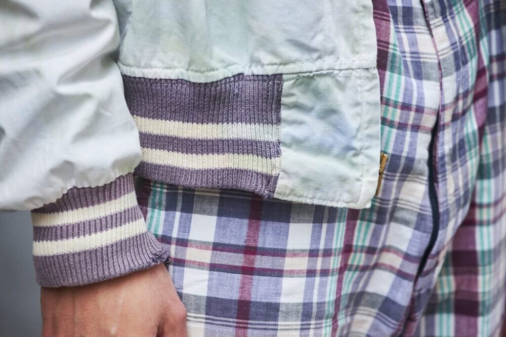 「マドラスパンツと、ジャケットのリブの色を合わせています。多色使いでもメインのアイテムの色を合わせることがポイントです」