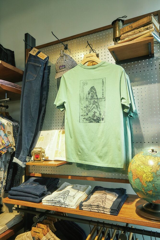 パタゴニアの直営店と言えば、どこにあろうともその地域・コミュニティに根ざしたお店づくりが特徴だが、もちろん軽井沢も例外ではない。店内に足を踏み入れ、その店内ディスプレイに目をやれば、まず飛び込んでくるのが本格的なテクニカルウエア。そう、アウトドアアクティビティを楽しみに訪れる人の多い軽井沢、つまりフィールドに限りなく近いこの店舗だからこそ、テクニカル系の製品が強く前面に打ち出されている。