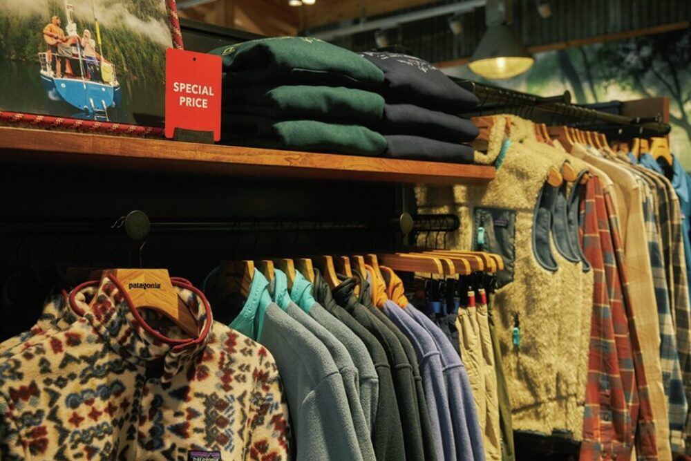 「ハイブリッドストア」とはパタゴニア独自の考え方で、インラインの製品とアウトレットの製品が同じ店内にて同時に販売されている店舗のこと。時季やタイミングによって両者の割合は変化するが、軽井沢店に関してはオープン時点で、豊富にアイテム&サイズがラインナップされていた。全国各地に点在する直営店のうち、5店舗のみがハイブリッドストアとして運営。