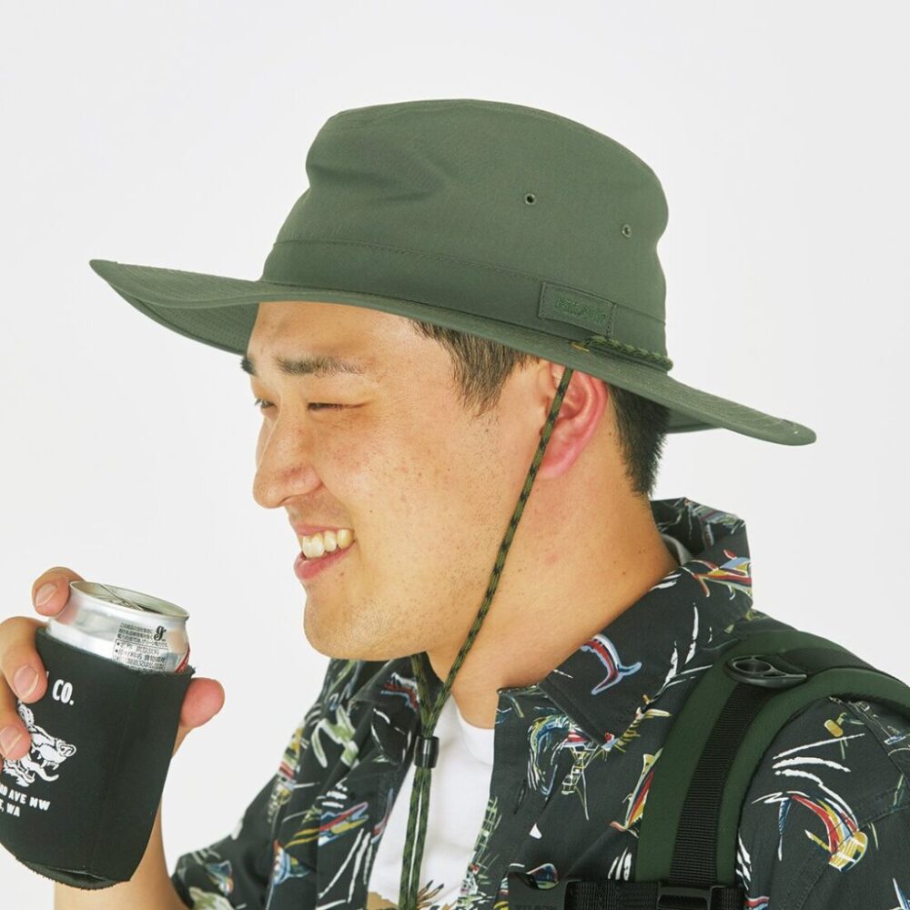 最高位のUPF50評価を獲得しているロングブリムハットで日除けも万全。コットン素材で街でも被りやすく、ドローコードがアウトドア気分をさらに盛り上げてくれます。