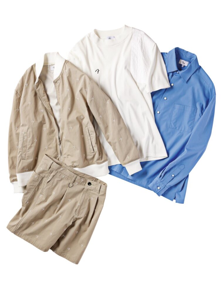 楽器ブランド〈フェンダー〉の、新たなアパレルラインが出色の出来だ。シャツにはトーマス・メイソンの生地を用い、ブルゾンとショーツのセットアップでは伝統的エンブロイダリーの意匠を踏襲。Tシャツのガンパッチ風デザインはギターを肩掛けする際の補強布であり、左利き用まで用意される徹底ぶり。お見事。シャツ3万9600円、Tシャツ1万4850円、ジャケット6万3800円、ショーツ3万5200円(すべてエフ イズ フォー フェンダーTEL0120-194-660)