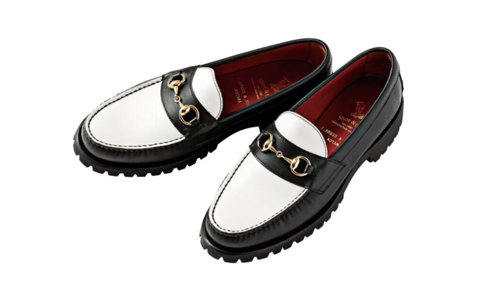 白黒はっきりしたパンダカラーのローファーは、どう選ぶか、どう履くかでスタイルの巧拙まではっきりする。で、こんなコラボレーション。ゴールドのビットを備えたエレガントデザインでありながら、ビブラム社製のタンクソールが力強く下支え。悪路を物ともせず、着用シーンを選ばない。袋モカシン特有の、足先を包み込むような履き心地もポイント。つまりはいつだって頼りたい、デイリー仕様の相棒ってこと。4万6200円(J.プレス & サンズ 青山TEL03-6805-0315)