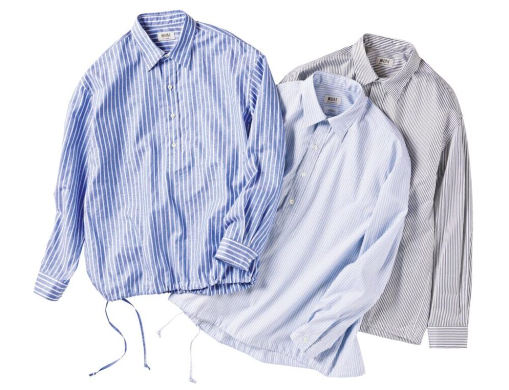 上半分だけ見れば、オーソドックスなドレスシャツの佇まい。でも下半分に視線を移せば、印象は激変するはずだ。裾に共地のドローコードが付属する驚きのブルゾンタイプなのだから。タックアウト、タックインのそれぞれでバランス良く見えるようシルエットを調整し、TPOに応じた着こなしが可能に。色柄ごとに生地が異なり、右から順にテスタ社、アルビニ社、テッシトゥーラ モンティ社のシャツ地を使う本格派の変化球だ。各2万2000円(ブリティッシュメイド 銀座店TEL03-6263-9955)