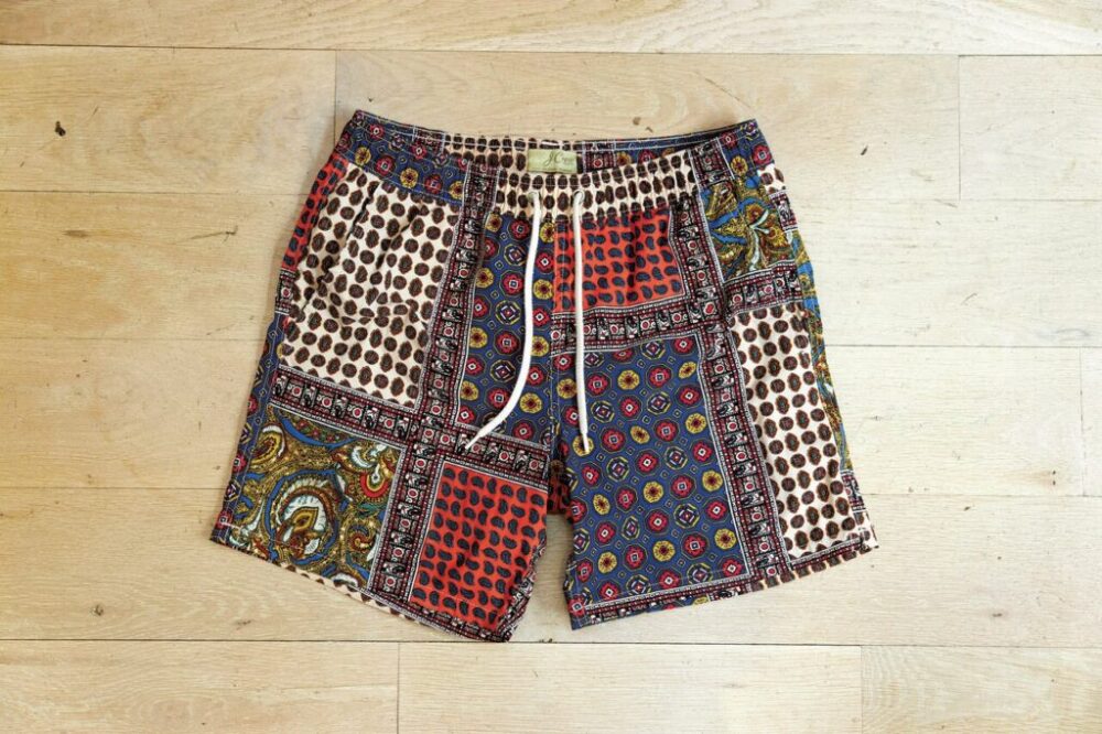 スイムトランクスはランニングショーツにもカジュアルなデイリーショーツにもなる。ブレンドンはネクタイの柄を他のものに応用するのが好き。特にペイズリーがお気に入り。