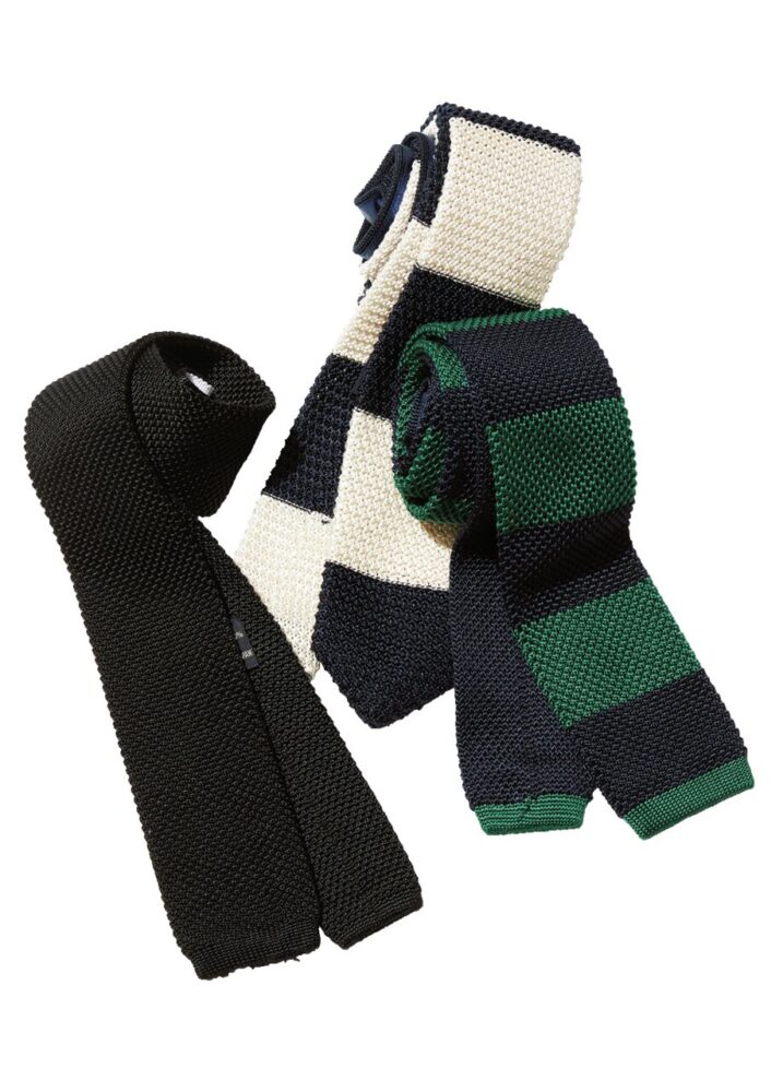 「タイはニットと決めています。愛用するのはほぼ黒。紺ブレにネイビータイではなく、黒にすることで米国の空気が伝わります。プレーンノットで小さく結ぶのが自己流」