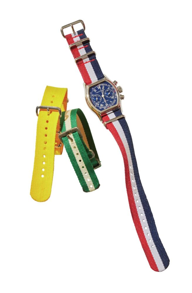 愛機はスイス製のマニュファクチュールブランド。「ベルトはすべてアイビーベルトに替えています。10本くらい所持していて、季節や服装によって付け替え」