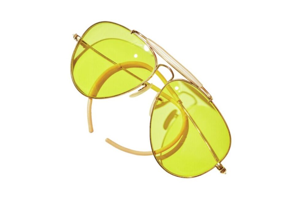 40年前に購入したサングラスは今も現役。「昔はこれをかけてクラブに通っていました(笑)。イエローのサングラスはファンキーな感じがして気分も上がるんですよね」