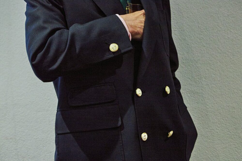 「当時ボタンは高級品で、付けすぎるのが贅沢だったんです。ダブルのブレザーの場合、ボタンはフロントに4つ、袖に1つと伝統的なスポーツジャケットのルールに則っています」