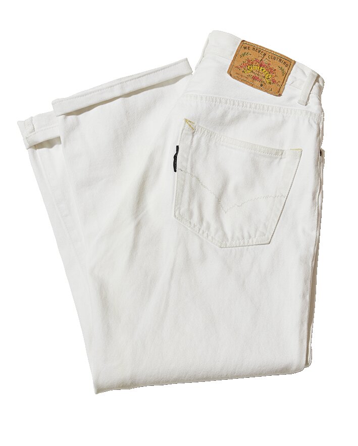 生成りがかったカツラギのジーンズは30年選手。「プレッピースタイルのジーンズはホワイトが基本です。元々ブルージーンズは労働者が穿くものでしたから」