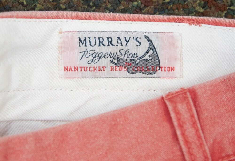 1960年、創業者の長男であるフィリップ・C・マレー(写真左)が、フランスのブルターニュ地方の海岸に点在する赤い旗を見て、「ナンタケットレッド」を考案。洗濯を繰り返し、潮風に晒されることで、柔らかくなり、より淡いピンクへと変化していく生地を発明した。