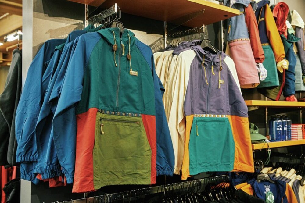 チロリアンテープを施したマウンテン・クラシック・アノラックは80年代のアーカイブから着想を得た近年のヒット作。創業地であるメイン州初の州旗をイメージしたワッペンが付く特別なコレクションはアメリカ本国でも売れ筋。こちらは日本国内でも購入可能だ。