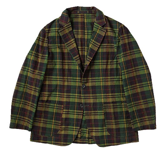 ダークマドラスが落ち着きのある印象。アンコン仕立てや、ライトウエイトのコットン素材など着心地にこだわった1着。3万4100円(ステイオアゴーデスクTEL03-6447-5095)