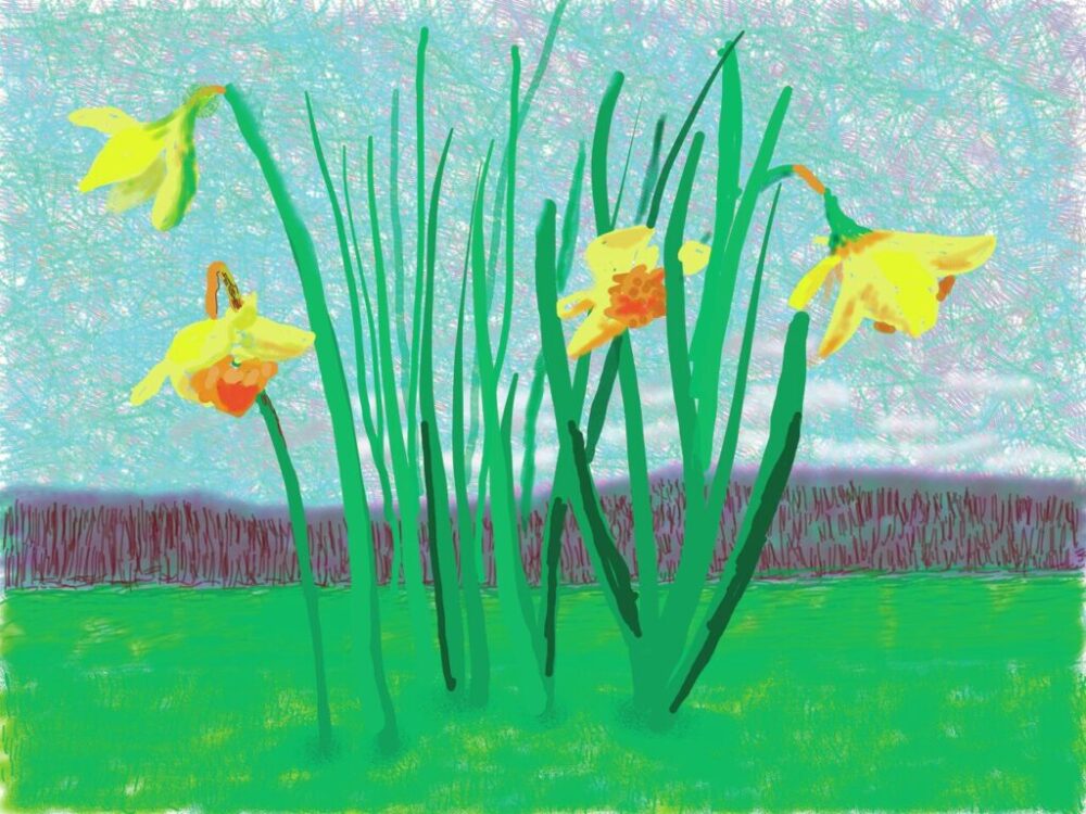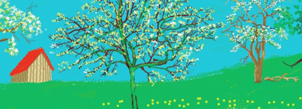 2005年頃からホックニーは毎年のように〈春の到来〉を描いています。冬の終わりから夏の始まりまでの劇的な季節の移り変わりはホックニーにとって非常に魅力的なようです。以前ホックニーに「なぜ春の到来を繰り返し描くのか」と訊ねたのですが、ひと言「ジョイフル」と返ってきました。これには季節の変化にワクワクする感じと、そうした変化を自分が描くことができる楽しみ、というふたつの側面があるんじゃないでしょうか。