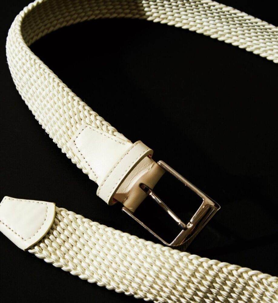 こちらのメッシュベルトは、昨年12月よりスタートした〈ラルコバレーノ〉初となるメンズベルトラインから展開されているもの。メッシュ部分は伸縮性が高く、ストレスのない付け心地のエラスティック素材を採用。レザーはもちろんのこと、それ以外の素材もすべてイタリア国内で生産されたもので、エラスティックに至ってはイタリアで100年以上続く老舗ベルトメーカーの素材を使用している。