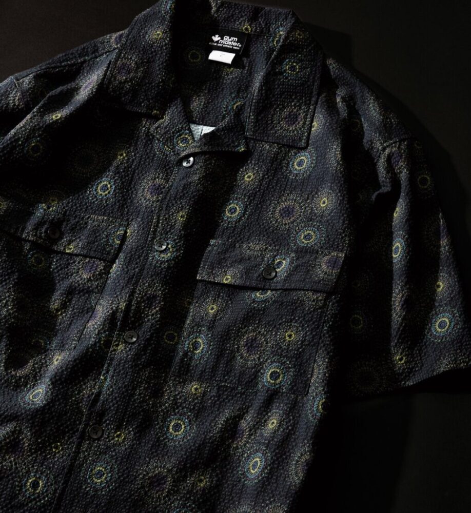1916年創業のカナダ ノバスコシア州のファクトリーで誕生したブランド〈ジムマスター〉。スウェットアイテムを中心に、バッグや雑貨など、ライフスタイルも含めた幅広い展開が魅力。紹介するのは黒地に浮かび上がる花火柄が目を引くオープンカラーシャツ。