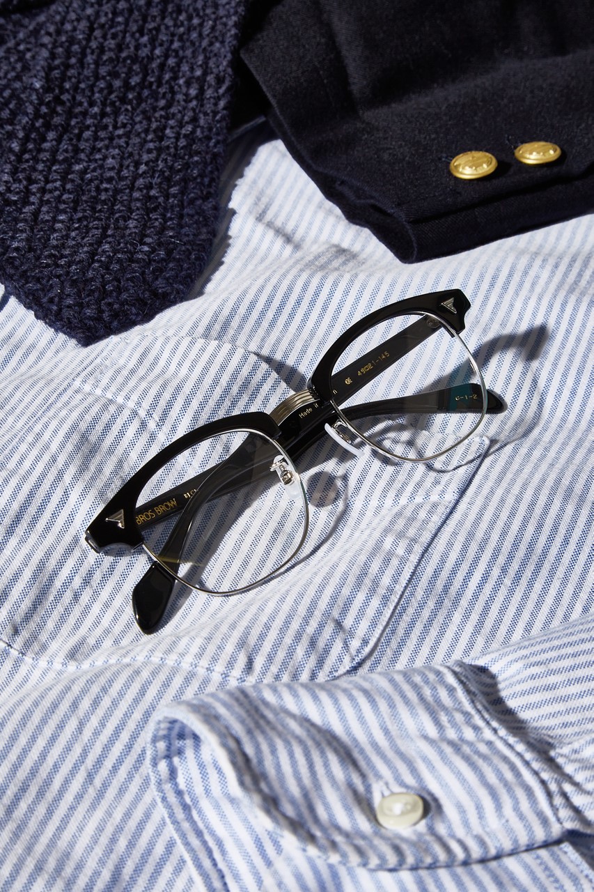はじめに、アメリカを代表するシェイプのひとつであるブロウタイプを、その元祖たるアメリカンオプティカルの[サーモント]を徹底研究して再現しているという時点で、BJクラシックが“アメリカの原点”についていかに尊く考えているかが分かる。また、およそ10年も続くブランドの大定番モデルは2型いずれも、アメリカンスタンダードの筆頭格とも言えるボストンタイプだ。そしてなにより、突飛なメガネでもモダンな