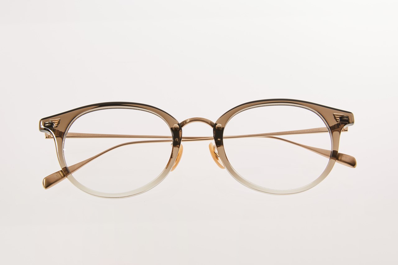 フロントはセルフレーム、ブリッジとテンプルはメタルで構成されたコンビ型。クラシックではあるが、ヴィンテージそのままではなく、天地やサイズのバランスを独自に調整している。また、カラバリは、セル部分のカラーとメタルの種類との掛け合わせで、なんと24パターンにも及ぶ。自身に合った色が必ず見つかるはずだ。3万9600円