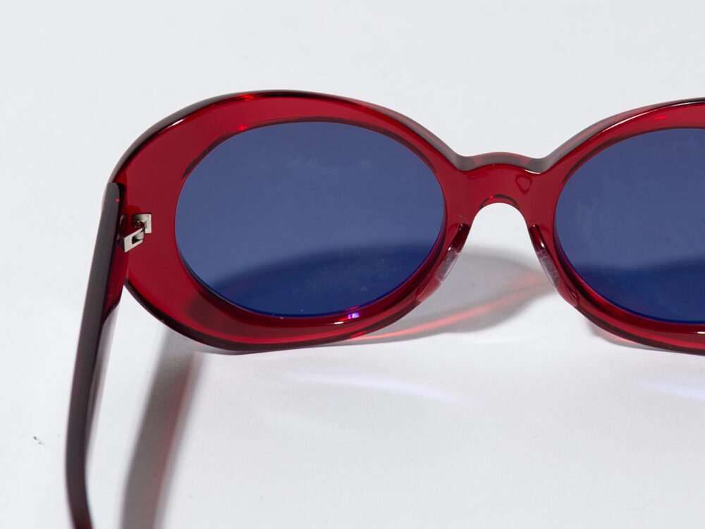 さらにglambならではのこだわりとしてRed、Black、Whiteのレンズ裏側に施されたのは反射防止のARコート。レンズ内部での照り返しを防ぐことで着用時の快適感を向上している。本体の素材は植物由来で低アレルギーなセルロースアセテートを使用。ロックなビジュアルに反して、着用者にやさしいディテールを随所に。